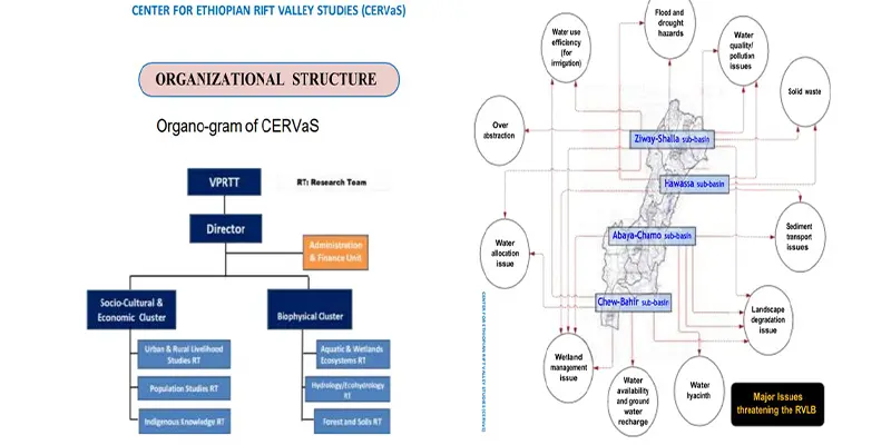 Ethiopian Rift-Valley Region (ERVR) is endowed with unique features of natural resources and extensive cultural heritage. The region offers a wide-ranging opportunity for research on natural and social sciences – particularly on the Ethiopian rift valley lakes and the indigenous culture. Given this unique opportunity, the center caters for interdisciplinary research and education at Hawassa University (HU), contributing to the livelihoods of the population in the region. Accordingly, the Center for Ethiopian Rift-valley Studies (CERVaS) was established in 2015. The Center is accountable to the Office of the Vice President for Research and Technology Transfer (VPRTT). The Center is at the inception is composed of staff from seven broad disciplines, but eventually, an affiliated staff in a wide variety of fields, including Natural resources and environmental studies, Agriculture, Engineering, Languages, Anthropology, History &Heritage, Health, Gender, etc. CERVaS staff have their home bases in different colleges/departments of the University including staff from other universities in the region. This strengthens the institutional and regional research capacity.